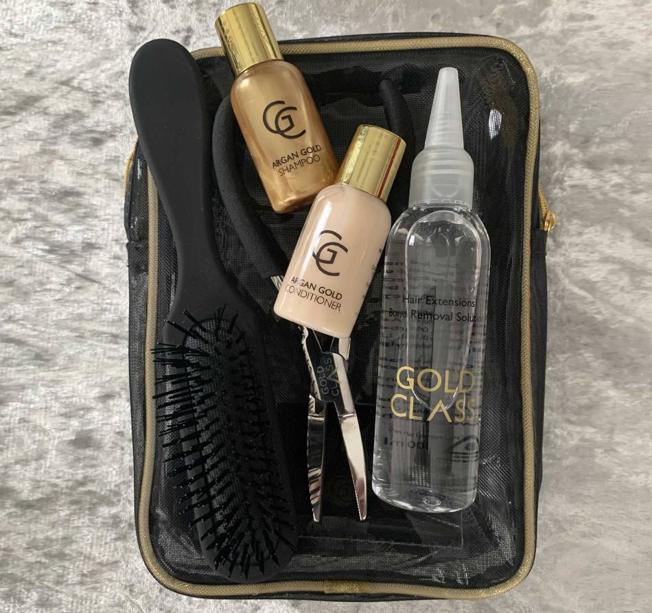 Once you have removed all your hair extension bonds, Gold Class recommends that you use their Argan Gold Shampoo and Conditioner to deep cleanse your own hair and remove any residues.