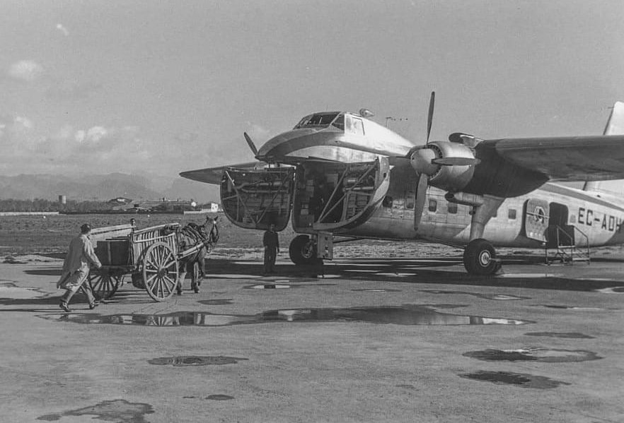 Back in the fifties, Mallorca’s first airport offered unique ground-handling! This wonderful photo was taken in 1954 when Palma’s Son Bonet Airport, now a strip for private jets and helicopters, was the island’s principal airport. Passenger luggage was transported from the hanger terminal and loaded onto the aircraft, by horse and cart…