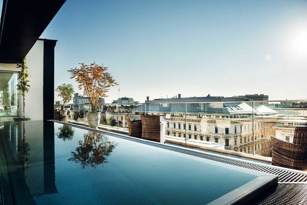 We’re in awe of the unparalleled views of Vienna, from the Grand Ferdinand Hotel’s heated rooftop pool. Perched on top of the centrally located boutique hotel, this pool offers guests unrivalled rooftop views of Vienna’s historic architecture. Located alongside the Grand Étage restaurant, visitors are invited to enjoy fine wine and dining when relaxing poolside.