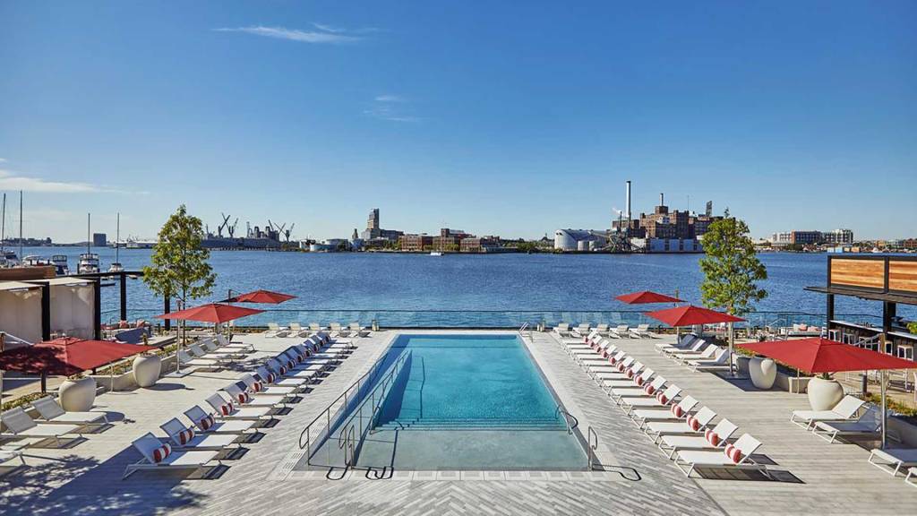 We’re told guests can dip their toes into the Sagamore Pendry hotel pool while snacking on seasonal grilled food, sipping on cocktails, and looking out onto panoramic views of Baltimore’s harbour and city skyline. It’s a winning proposition. The hotel’s deck and pool is perched at the end of the Recreation Pier, providing guests with the best urban views around… all of which can be taken in from the luxury of a private cabana bed. Our order’s a Georgia Mule.