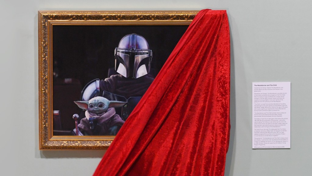 The Gallery’s Youth Forum were given a first look at the portrait: “We really like the composition of the portrait – we’re all so used to seeing the Child as a cute meme, but he’s not in the centre of the canvas, he’s down to one side. It really makes you look carefully to see what the picture is about and what the relationship is with the figure of the Mandalorian.”