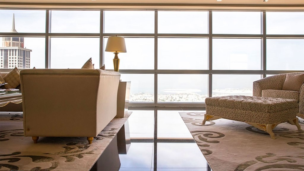 To make your stay really luxe, you can even upgrade for £1,000 to go full board, which includes five business lunches and five dinners at selected award-winning restaurants around Dubai every week.