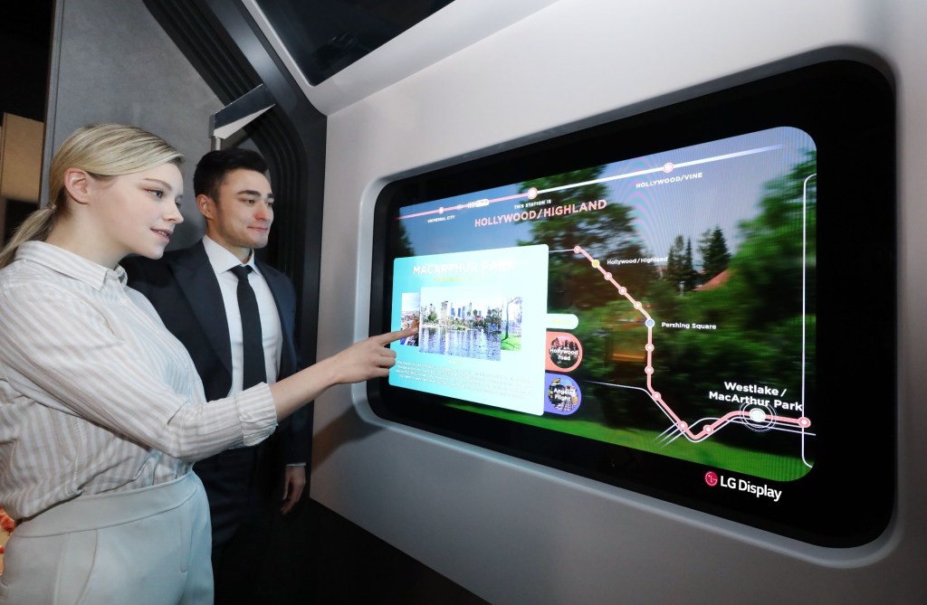 LG Display will also demo a transparent OLED display replaces conventional windows on a subway train. The next-gen glass means passengers can enjoy the passing scenery while viewing clear information such as subway line maps, weather information, and other news.