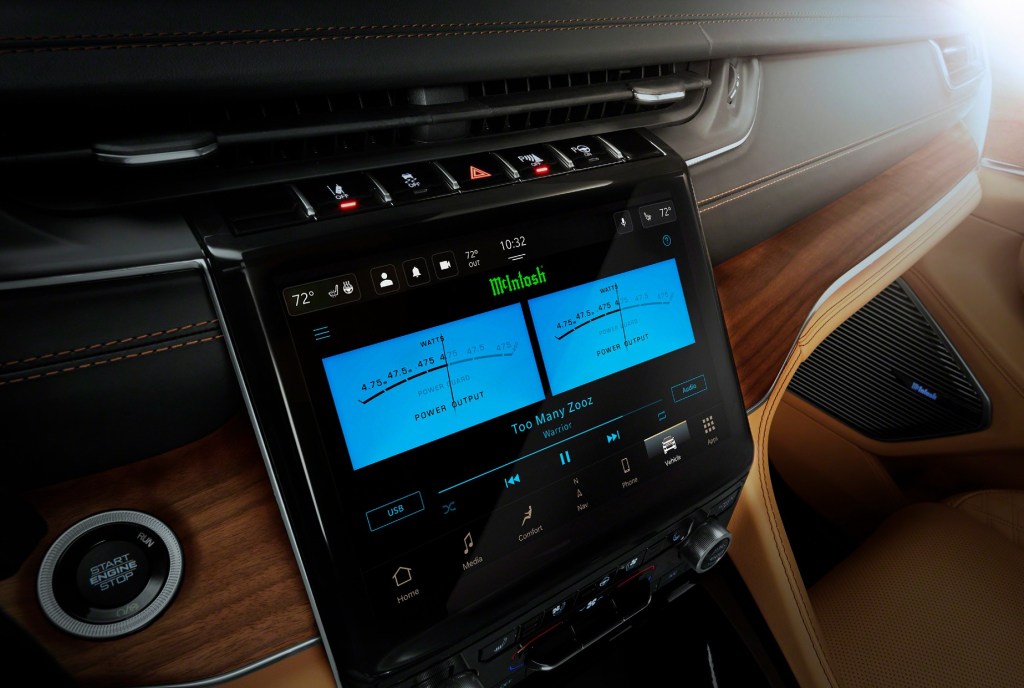 Available first in the 2021 Jeep Grand Cherokee L, the MX950 McIntosh Entertainment System is available in Overland and Summit models and comes standard when equipped with the Summit Reserve Package.