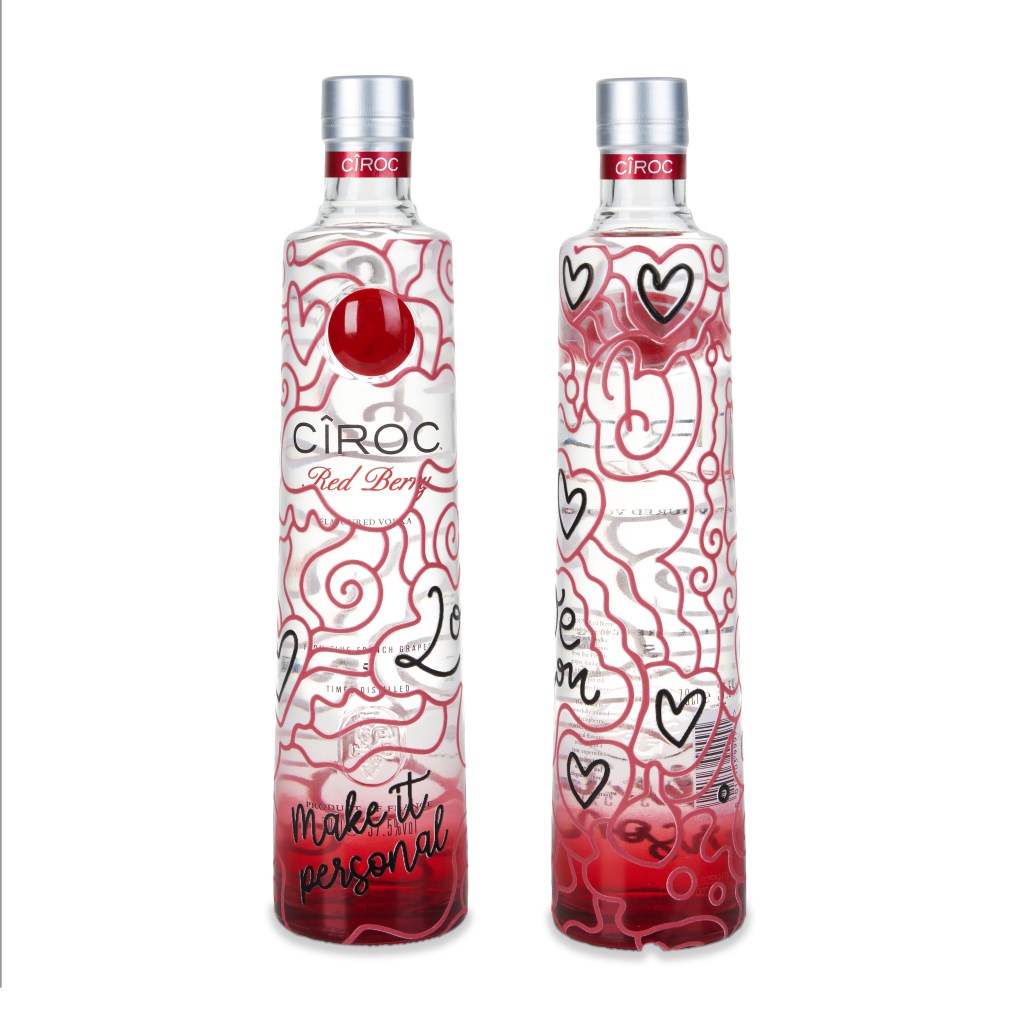 The brand’s super fun Valentine’s collection of designs is available in three of the world’s most popular spirits and drinks, on a bottle of celebration-worthy CÎROC vodka, exquisite Courvoisier cognac or celeb-favourite Belaire champagne. Your Valentine will never have been given a gift like this before.
