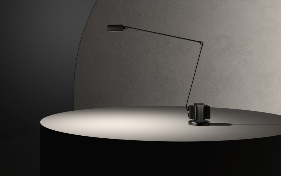 Daphine is composed of three basic elements: a slender articulated arm, a small adjustable diffuser and a transformer, which is deliberately unconcealed, on the base.