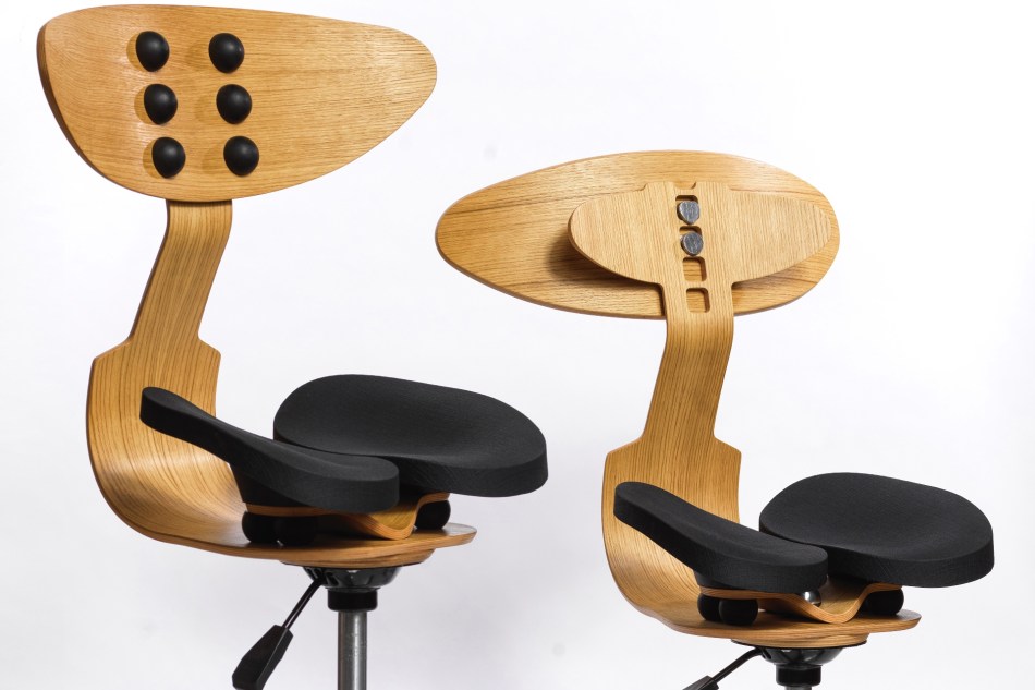 Not only does it allow your pelvis to maintain the same position seated as standing, the chair encourages each thigh to move independently of the other, again to replicate our standing posture says its creator.