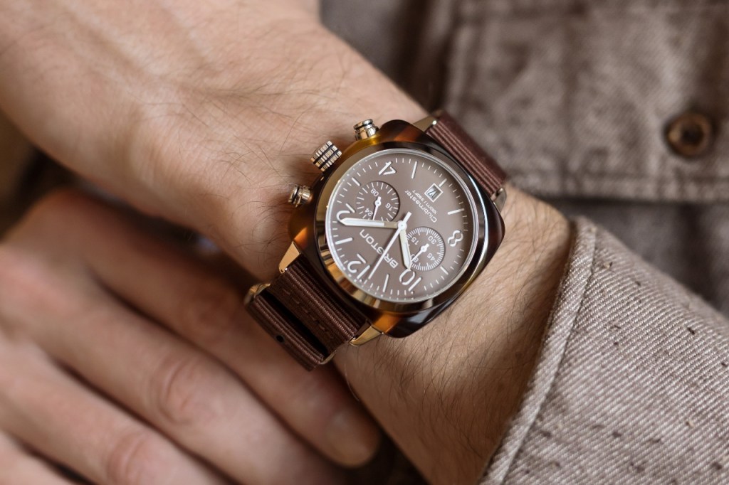 The sporty new Briston models feature Briston’s characteristic cambered-square 40 x 40mm case in tortoise shell acetate, with a choice of four, unique dial options (vanilla, nude, caramel and chocolate), in stylish matt powder finish.