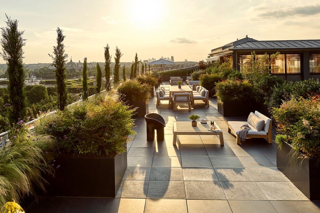 Sunlit terrace at Paris le Meurice Hotel