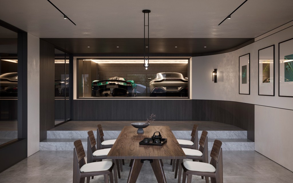 The Aston Martin designed ultra-luxury residence features a spectacular sports car gallery, wine cellar, home cinema, gym, and private spa. Aston Martin is responsible for the interior styling of the property, even down to the designer furniture choices, and worked with a local architect on the dramatic exterior.