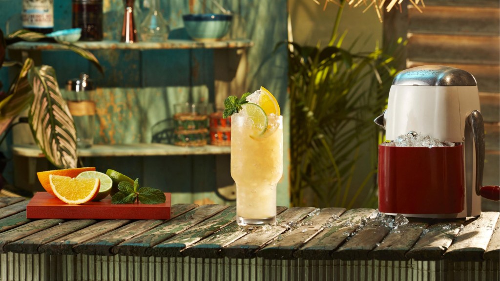 Shake all ingredients with ice and strain into a highball glass filled with (preferably pebble) ice.