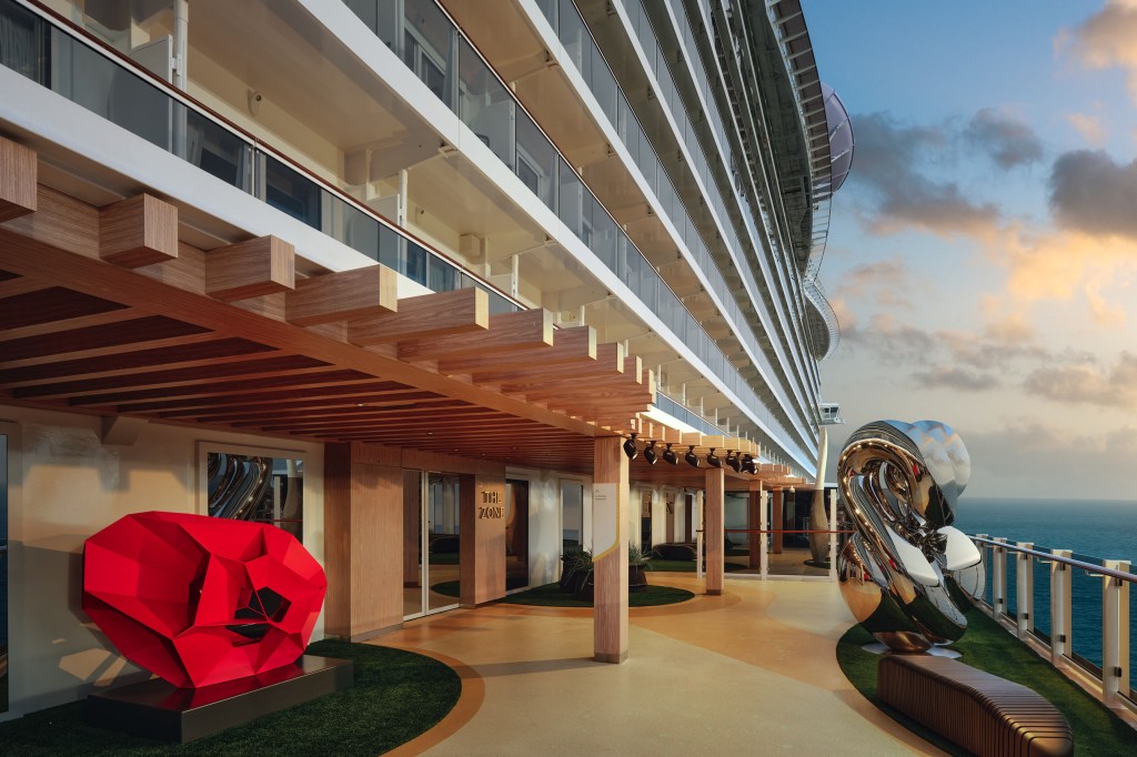 The ship also features an expansive array of artwork, including The Concourse, a multi-million-dollar outdoor sculpture garden, and a dynamic, interactive 52-foot-wide art piece by contemporary British digital artist Dominic Harris.