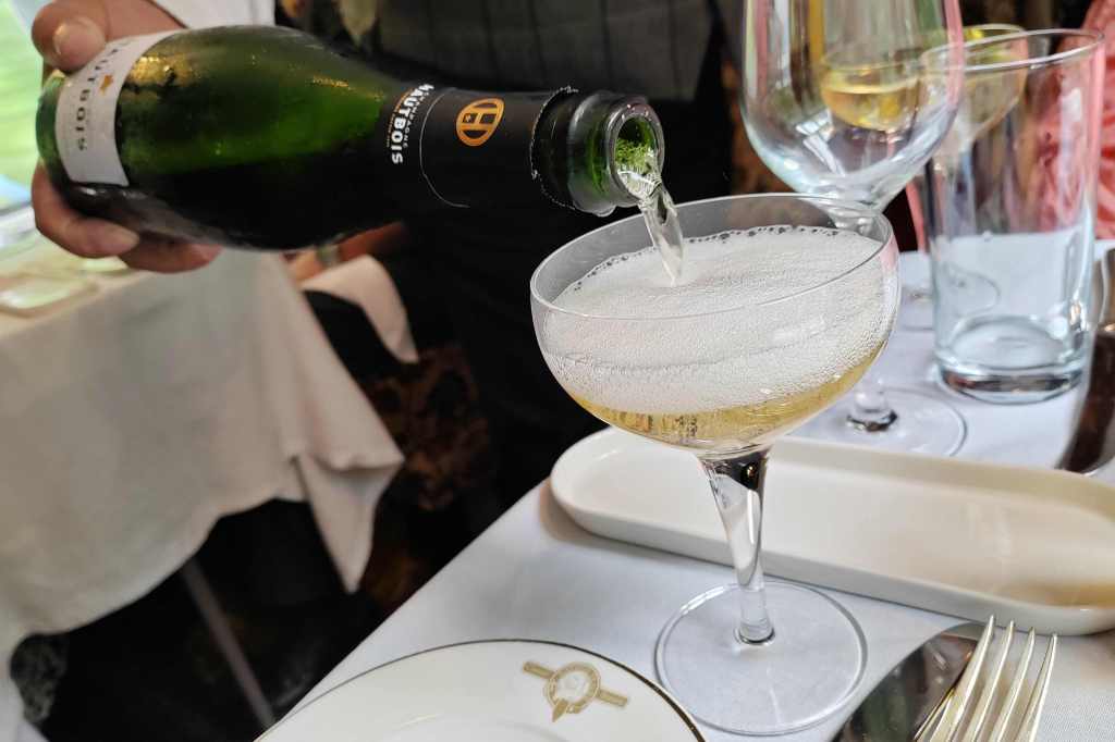 Champagne is served around Fawkham junction, suitably chilled. There’s a sense of bonhomie in our carriage. Everyone is there for an indulgent good time. The dress code is smart but casual; some passengers have gone all out, the rest of us have made a modicum of effort.