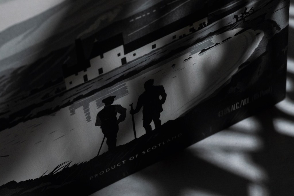 The bottle features monochromatic illustrations by British artist Bill Bragg. The accompanying booklet tells the story of Johnston’s life and legacy, illustrated in Bragg’s signature black-and-white style.