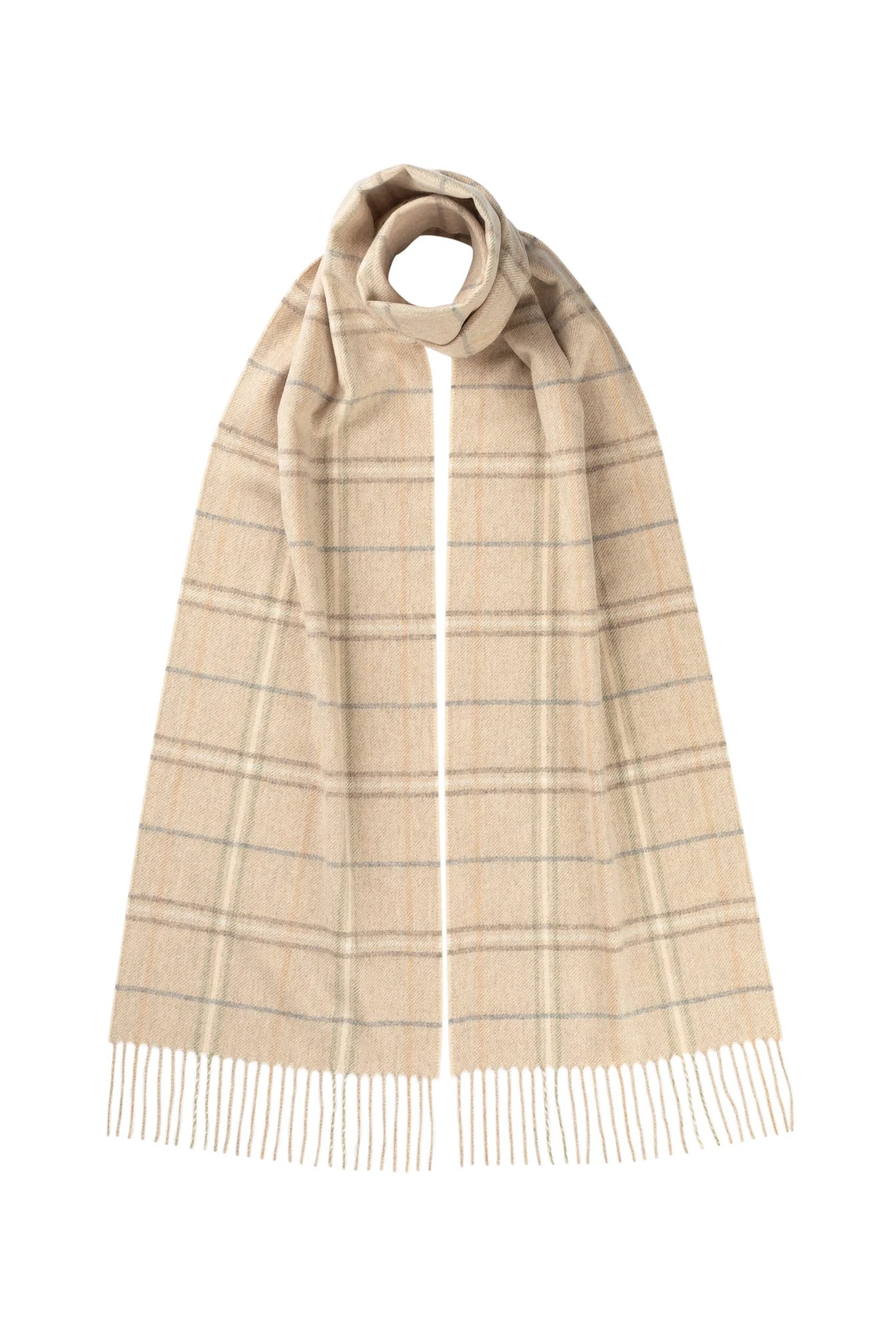 Johnstons of Elgin natural windowpane cashmere scarf, £187 with two character monogram