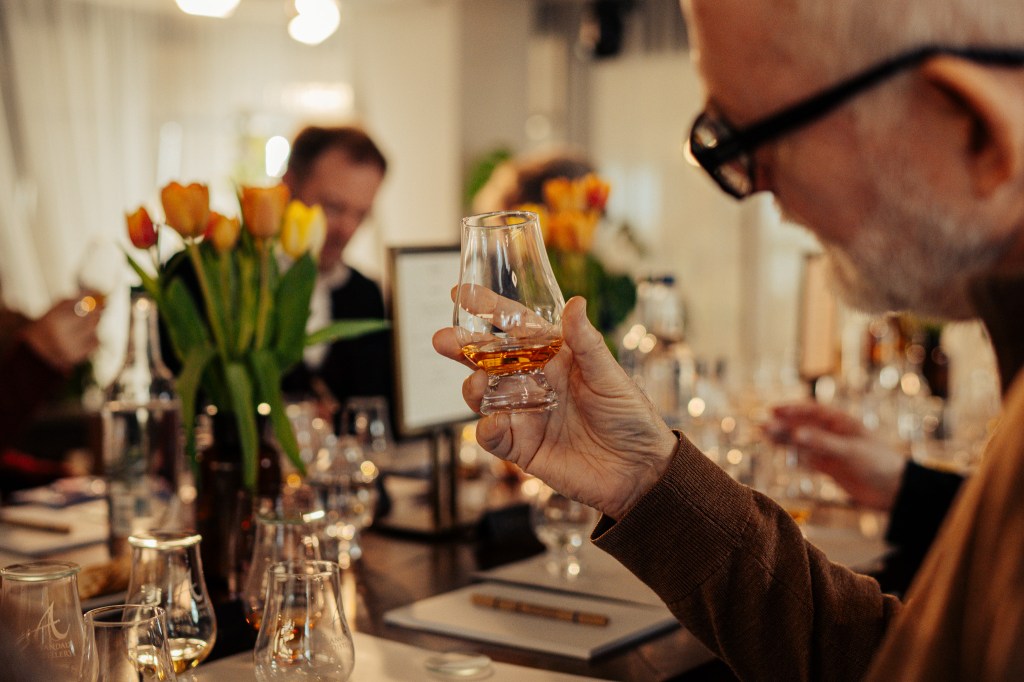The expressions were contrasted with their respective new makes and younger double oak ex-bourbon unpeated and sherry butt peated iterations, matured in Woodford Reserve and STR red wine casks respectively.