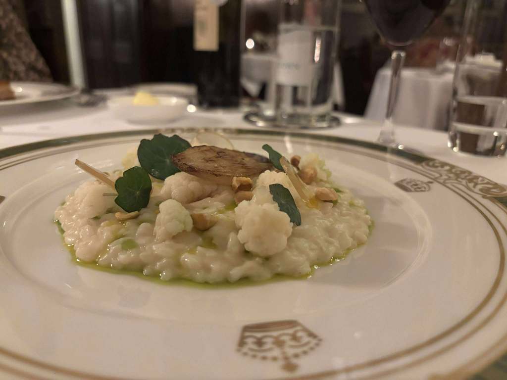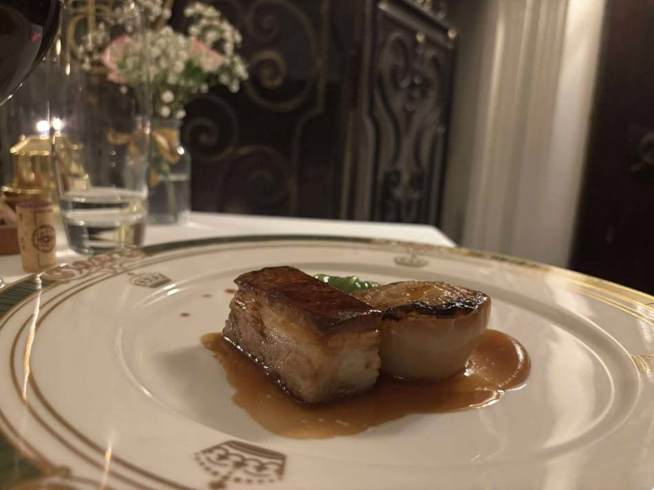 I follow with the cauliflower risotto, a creamy affair artfully spotted with chardonnay jelly and hazelnuts. It’s delicate and indulgent all in one – comfort food of the most luxurious order. My partner opts for the belly pork with caramelised apple, a choice I’m sure Henry VIII would demands seconds of.