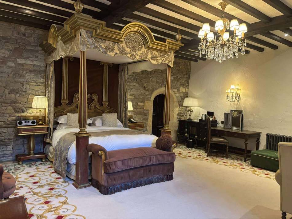 There’s staying in a castle – and then there’s sleeping like royalty. Our bedchamber at Thornbury Castle is jaw-dropping. Each suite individually designed and named, we stay in the ‘Mary Queen of Scots’ bedchamber – but this is no ordinary hotel room. Heavy stone walls, intricately carved woodwork, and windows overlooking the gardens… and the centrepiece: a grand four-poster bed that looks straight out of a period drama.