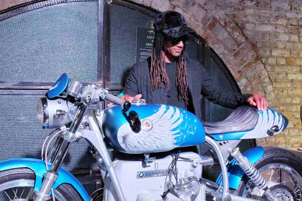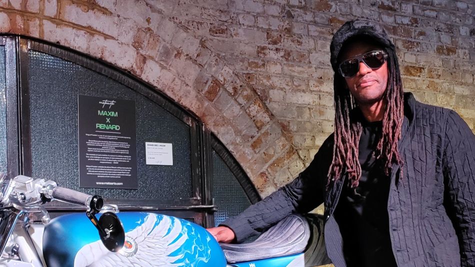 A custom motorcycle created by Renard Motorcycles with bespoke detailing from The Prodigy’s Maxim, is the star turn at MotoArto, a novel art show running in London this week.