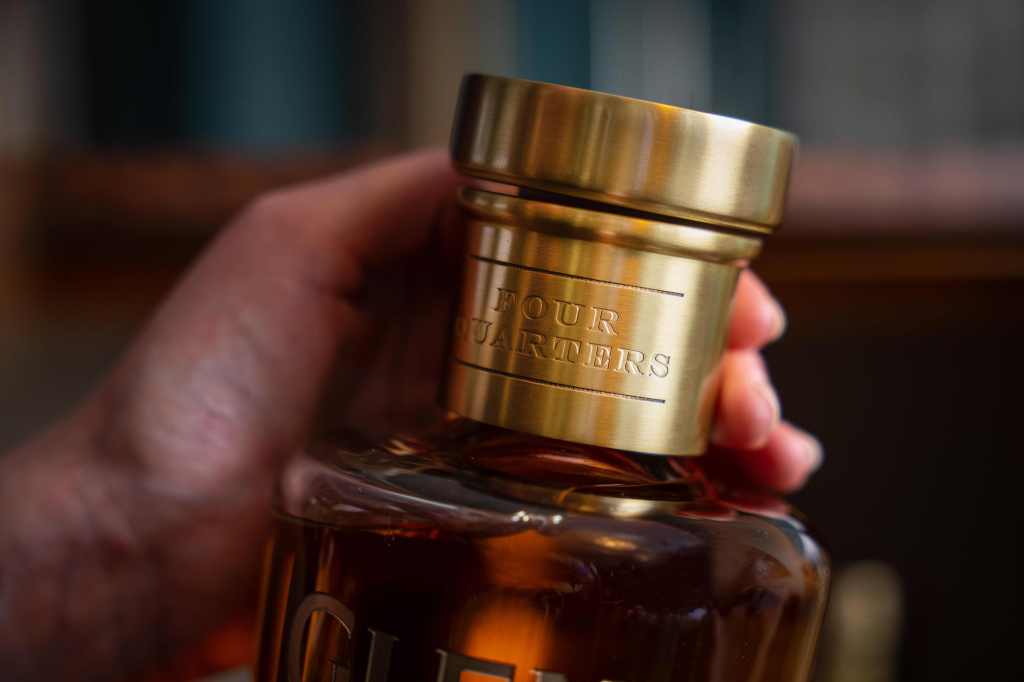 The Four Quarters set is accompanied by a bespoke presentation created in collaboration with Hamilton & Inches, the Edinburgh-based jeweller and silversmith. Each 30 per cent lead crystal Glencairn decanter is engraved with gold infill and topped with a brass-collared stopper bearing a gold-plated sterling silver coin detailing the cask type and number.