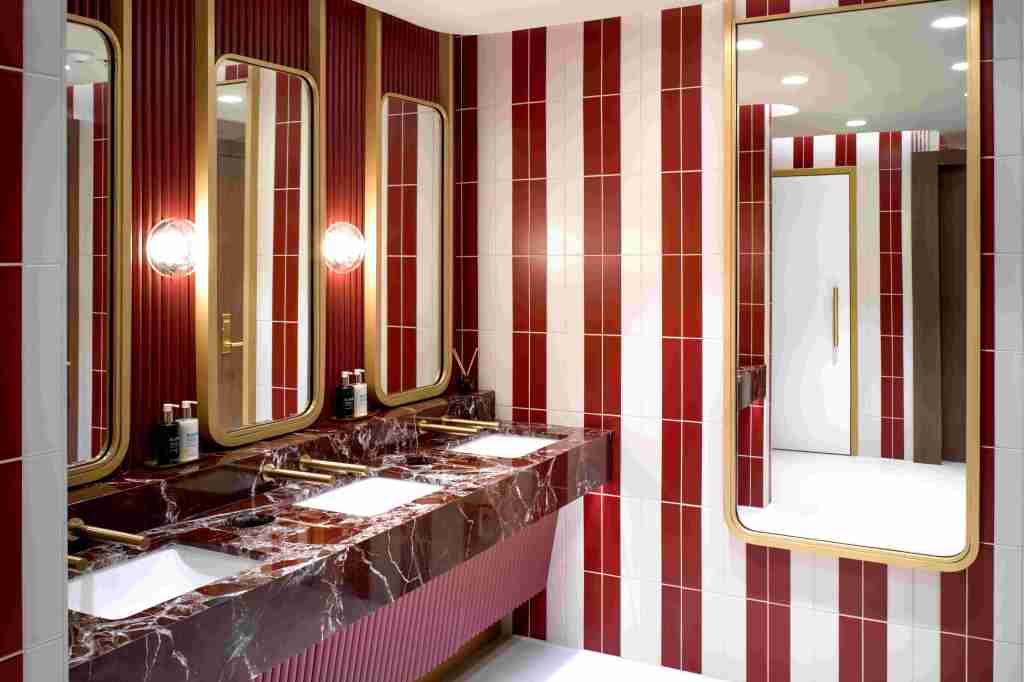 Design includes playful ‘look-up’ moments, such as mirrored ceilings and floor murals, linking back to British Airways’ heritage.