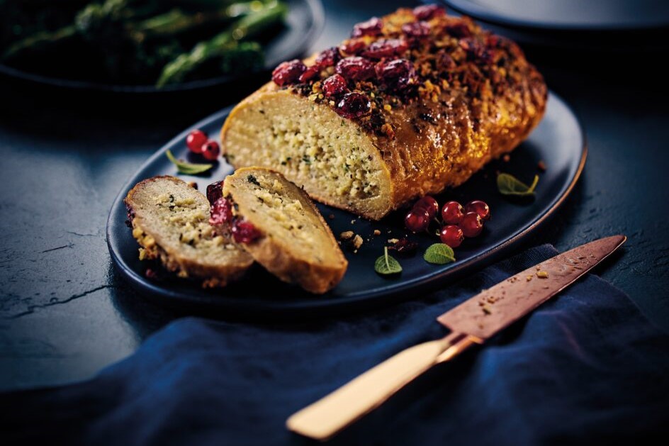Aldi continues to widen its vegan and vegetarian range, and the star pick this year is the Specially Selected Sage & Onion Stuffed Tofu Roasting Joint (£4.99, 400g). With a caramelised stuffing centre and cranberry-herb topping, it’s an intriguing flavour-first alternative to the usual.
