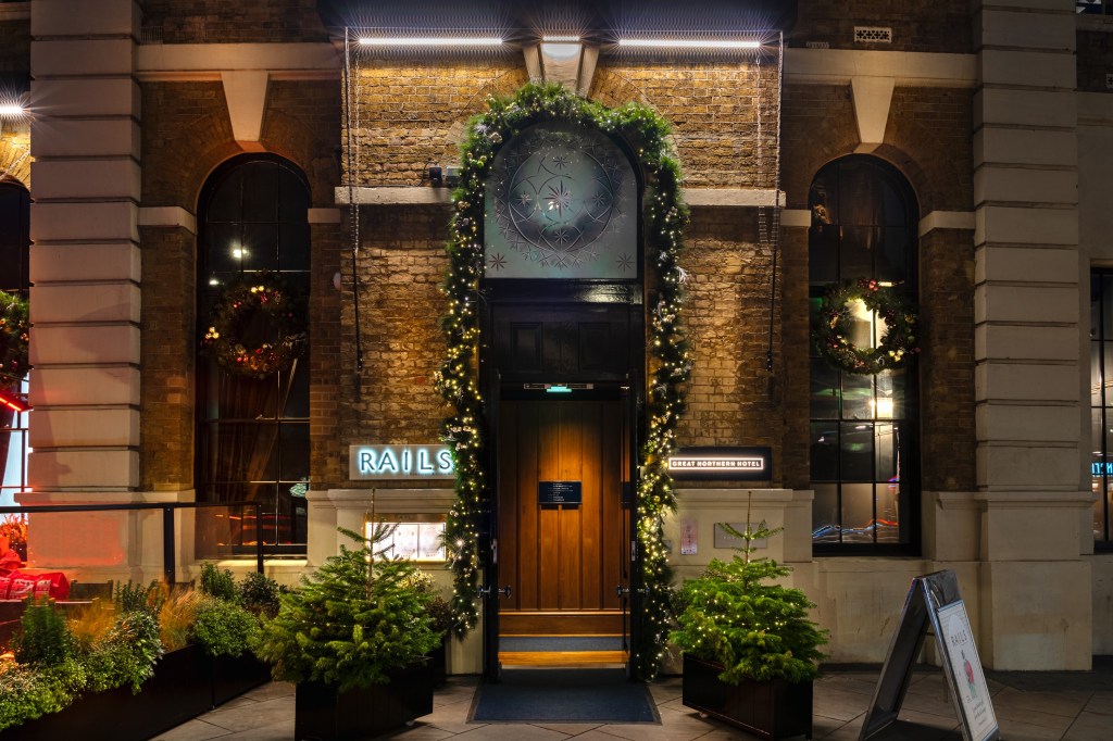 Rails at King’s Cross is offering a refined but relaxed Christmas Day menu, starting with a glass of Nyetimber. Starters include lobster gateaux and game terrine, followed by turkey with sage and apricot stuffing, roast sirloin, monkfish or vegetarian pithivier.
