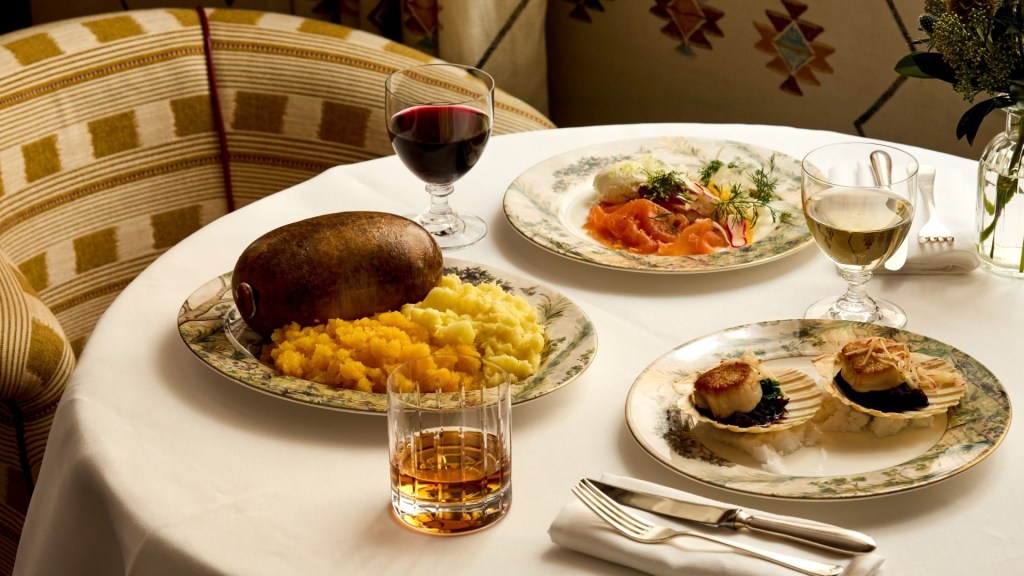 A more relaxed Scottish tasting menu at this eatery, based in Spital Square, London, features Cullen skink, haggis with neeps and tatties, Isle of Mull cheddar and raspberry cranachan. Tickets are £75, with optional wine or whisky pairings at £40. For bookings click here.