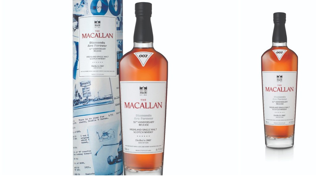 The Macallan has unveiled a new limited-edition single malt Scotch whisky to mark the 55th anniversary of Diamonds Are Forever. The release continues the whisky maker’s creative partnership with the Bond franchise, following its James Bond 60th Anniversary bottling in 2022.