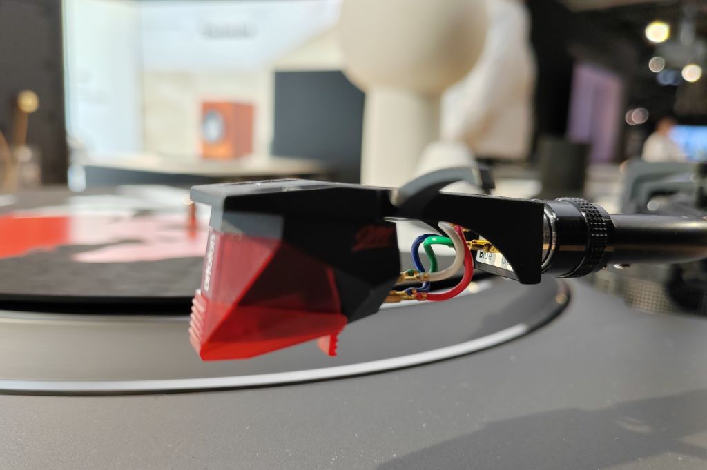 Under the lights, the metallic grey finish of the SL-1500CS underlines its audiophile intent…