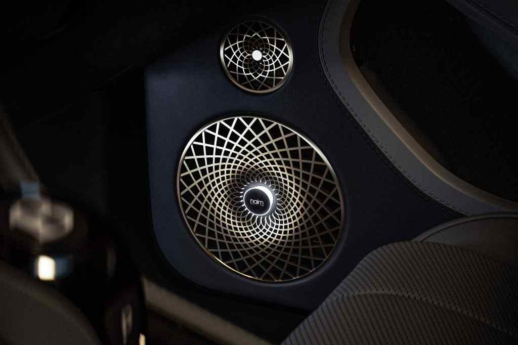 The Naim for Mulliner system features 18 speaker drivers and two upgraded active channels, including four TAM tweeters, nine Focal Utopia M-series midrange units, four dedicated woofers, an ultra-high-performance subwoofer and two active bass enhancement seats.