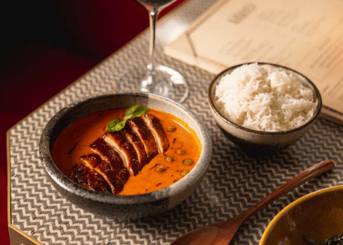 The drinks menu leans into the same bold flavours. Expect tropical, spice-driven cocktails with a polished edge – think mango margaritas, hibiscus negronis, and the house “Sabai Sabai,” blending Mekong rum with kaffir lime and Thai basil. Non-alcoholic options are just as thoughtfully put together, such as a delicious-sounding nostalgic coconut-laced dirty soda and a jasmine tea and lychee cooler.